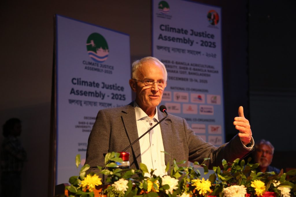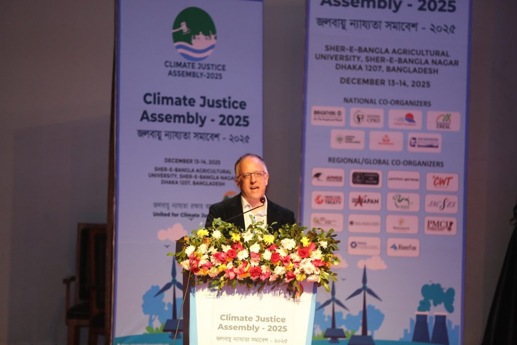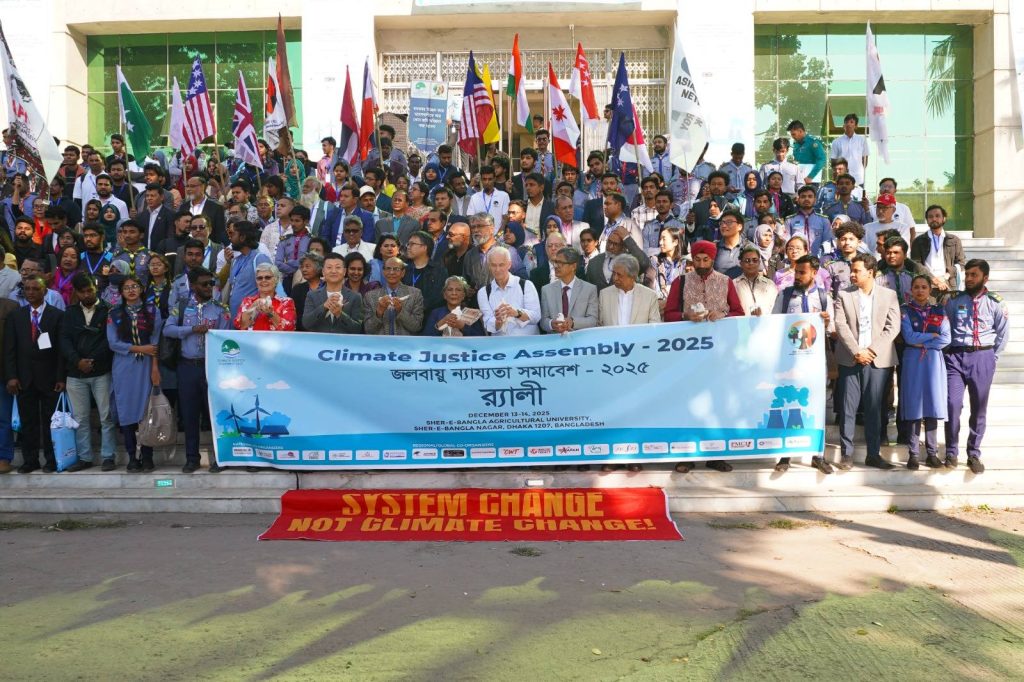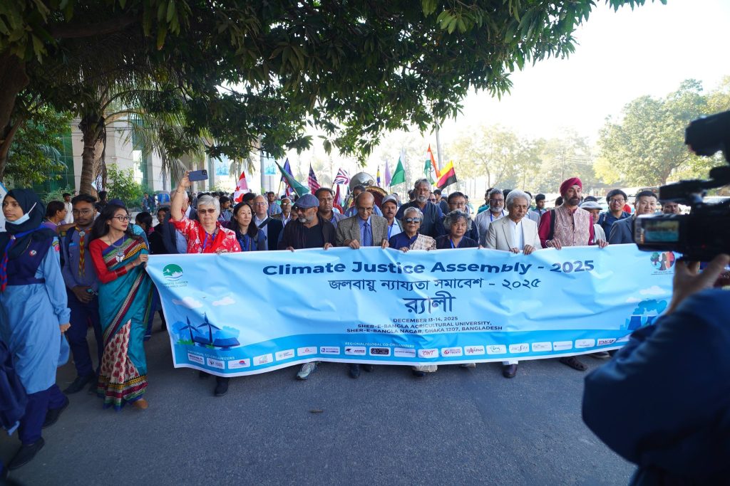 The Climate Justice Assembly 2025 was held on 13–14 December 2025 at the auditorium of Sher-e-Bangla Agricultural University, Dhaka. The Assembly was organized by the environmental citizens’ platform Dhoritri Rokhhay Amra (DHORA) in collaboration with 21 national and international organizations. Around 2,000 participants attended the event, including government representatives, international climate activists, researchers, and representatives of climate-affected communities.