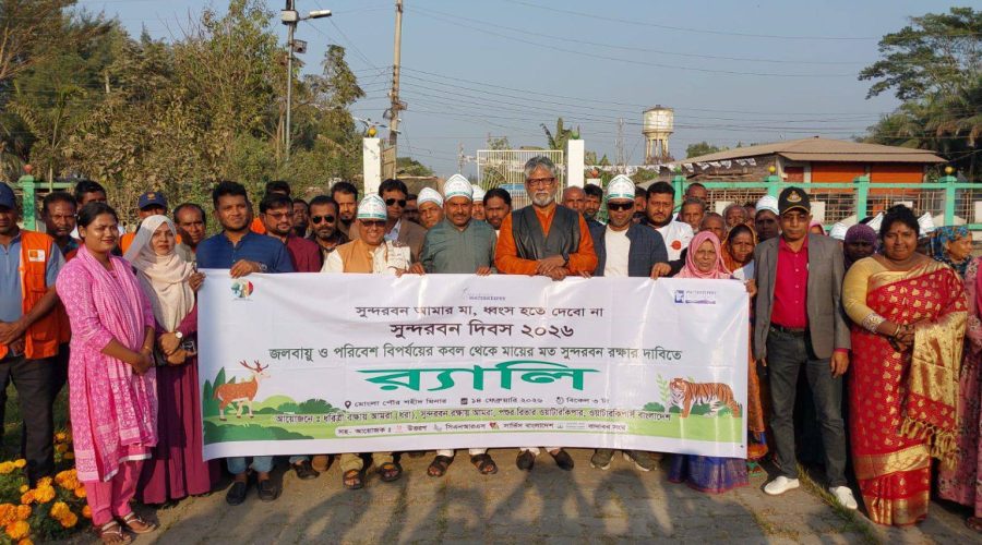 On Saturday, February 14, 2026, Sundarbans Day was observed in Mongla under the slogan “Sundarbans is my mother, we will not let it be destroyed.” In the afternoon, a rally and public meeting were held at the Mongla Municipal Shaheed Minar square. Speakers urged the authorities to take necessary measures to protect the Sundarbans, a UNESCO World Heritage site. The event was organized by DHORA, Waterkeepers Bangladesh, and Pashur River Waterkeeper. Ahead of the rally, children’s art competitions on the Sundarbans, a tiger drill, stick games, and cultural programs were held. Co-organizers of the programs included Uttaran, CNRS, Badabon Sangha, and Service Bangladesh.